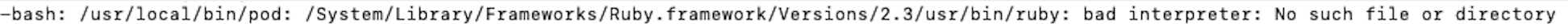 bash: /usr/local/bin/pod: /System/Library/Frameworks/Ruby.framework/Versions/2.0/usr/bin/ruby: bad interpreter: No such file or directory