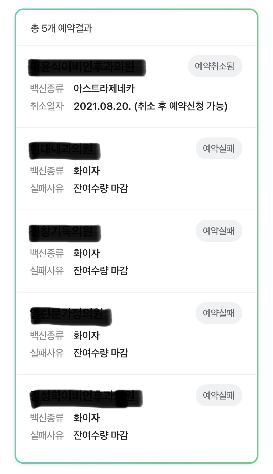 (맨 위의 아스트라제네카 예약 취소는 화이자인줄 알고 예약 했다가 번화로 취소쑈까지 ㅜㅜ)