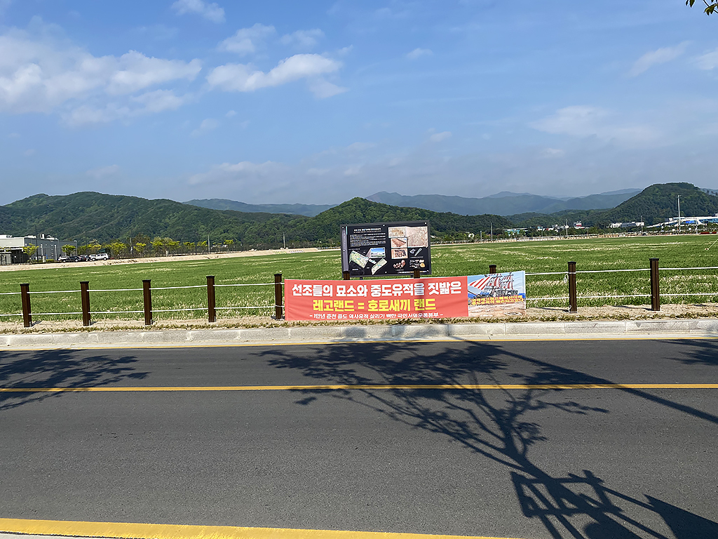 훌륭한 문화재 지킴이라며 호로 XX 따위의 쌍욕을 내걸며 레고랜드를 방문한 아이들과 부모들이 무슨 죄를 지었다고 저따위 쌍욕 현수막을 보며 불편한 마음을 갖고 비싼 돈을 내고 입장하길 원하는 것인가?