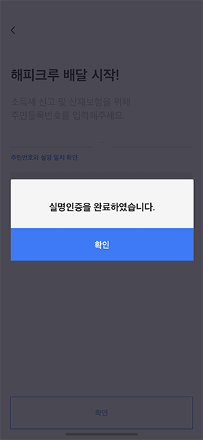소득세 신고 목적으로 주민등록번호를 최초 로그인 1회 필수로 수집하며, 주민등록번호가 없을 경우 배달활동 및 수수료 지급이 제한됩니다.
