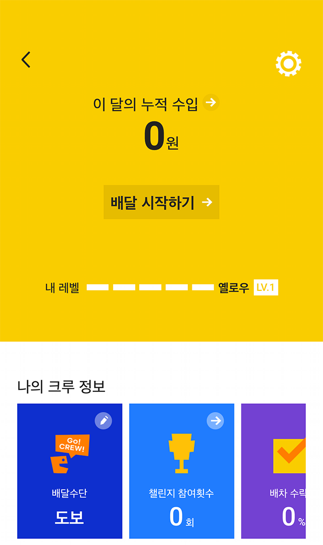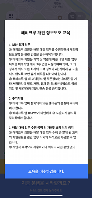 교육을 모두 마쳤다면 이제 본격적으로 해피 크루 배달을 해봅니다.