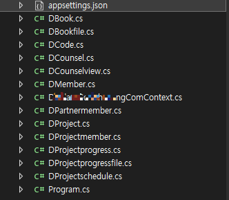 이처럼 패키지를 설치하고 appsettings.json파일로 가서 DB Connection정보를 입력해 둔다.