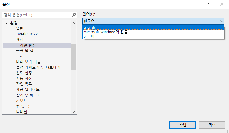따라서 영어 버전으로 visual studio 2022를 셋팅하여 사용해야 한다.