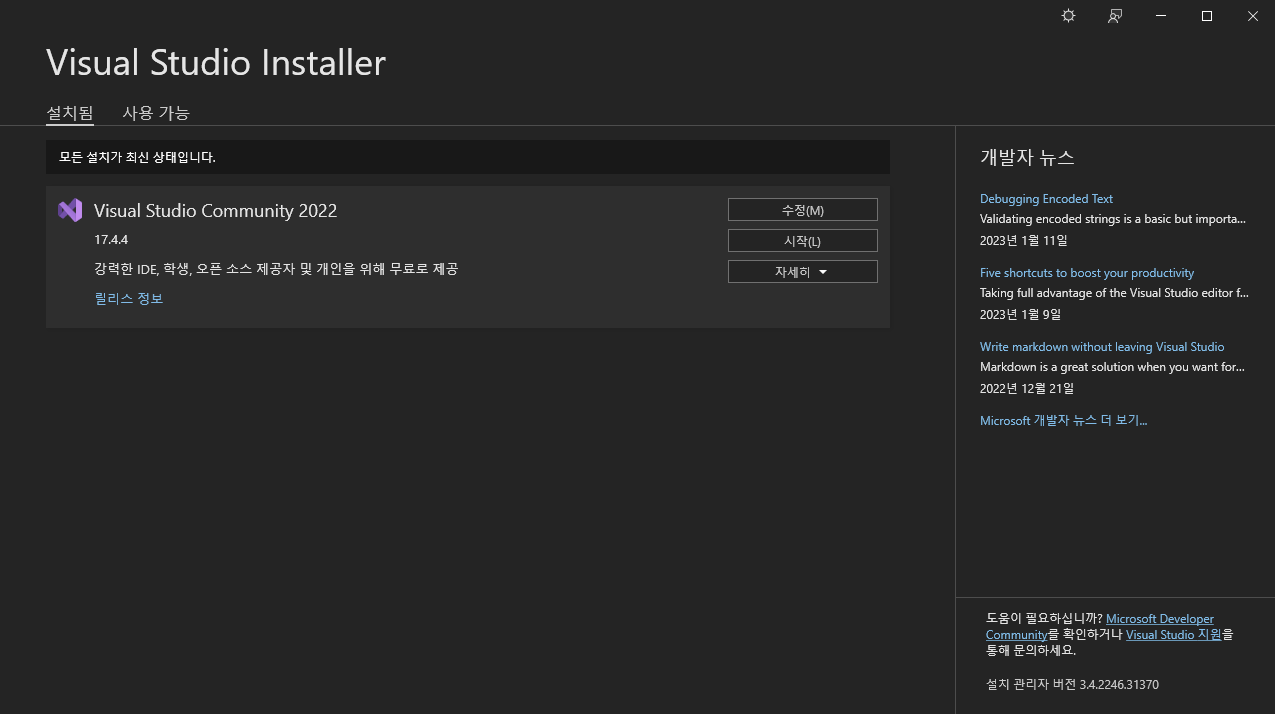 | Visual Studio Installer 다운로드 속도 느림 현상 해결하기 (0) | 2023.01.12 |