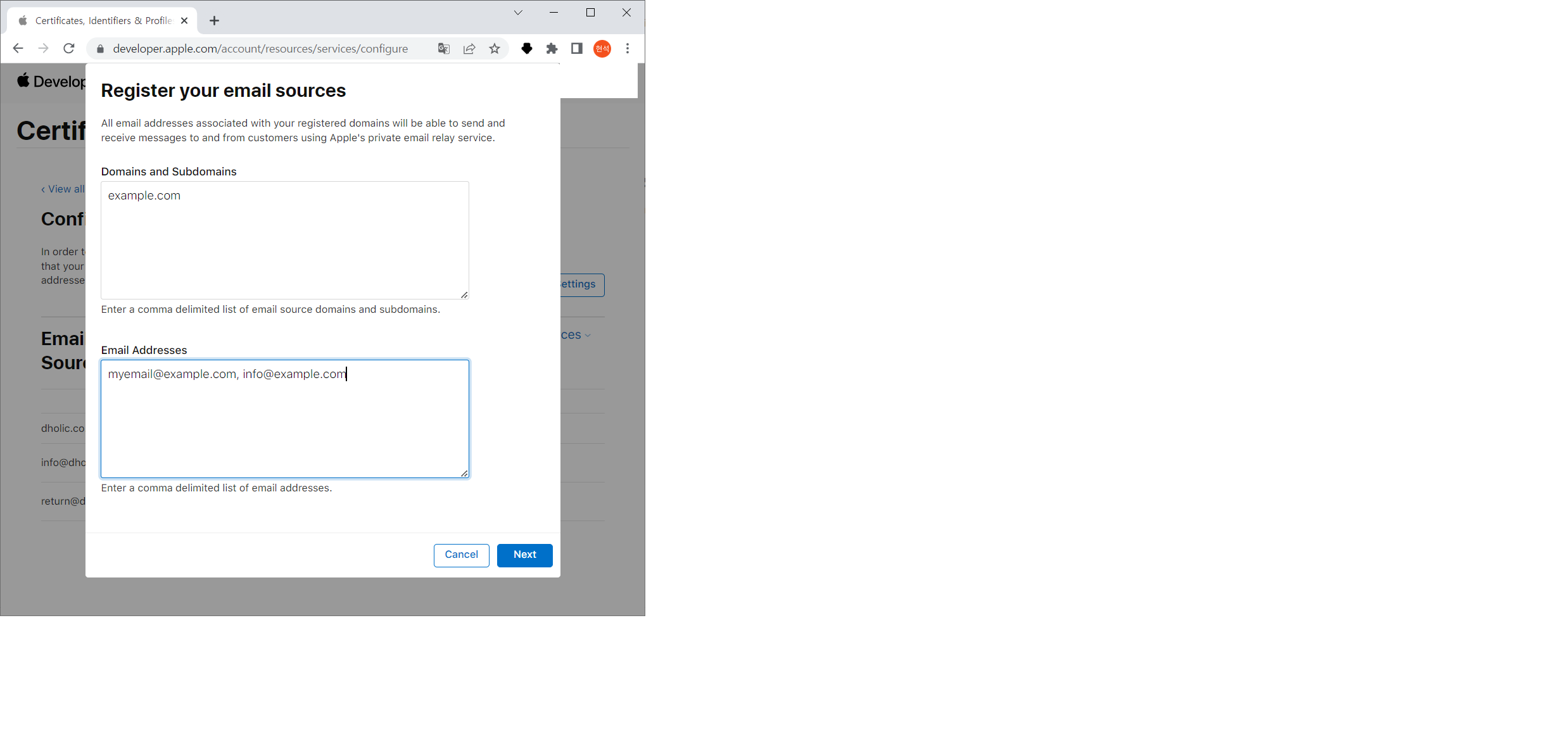 Sign in with Apple for Email Communication의 Configure버튼 선택하면 아래 링크로 최종 이동 된다.