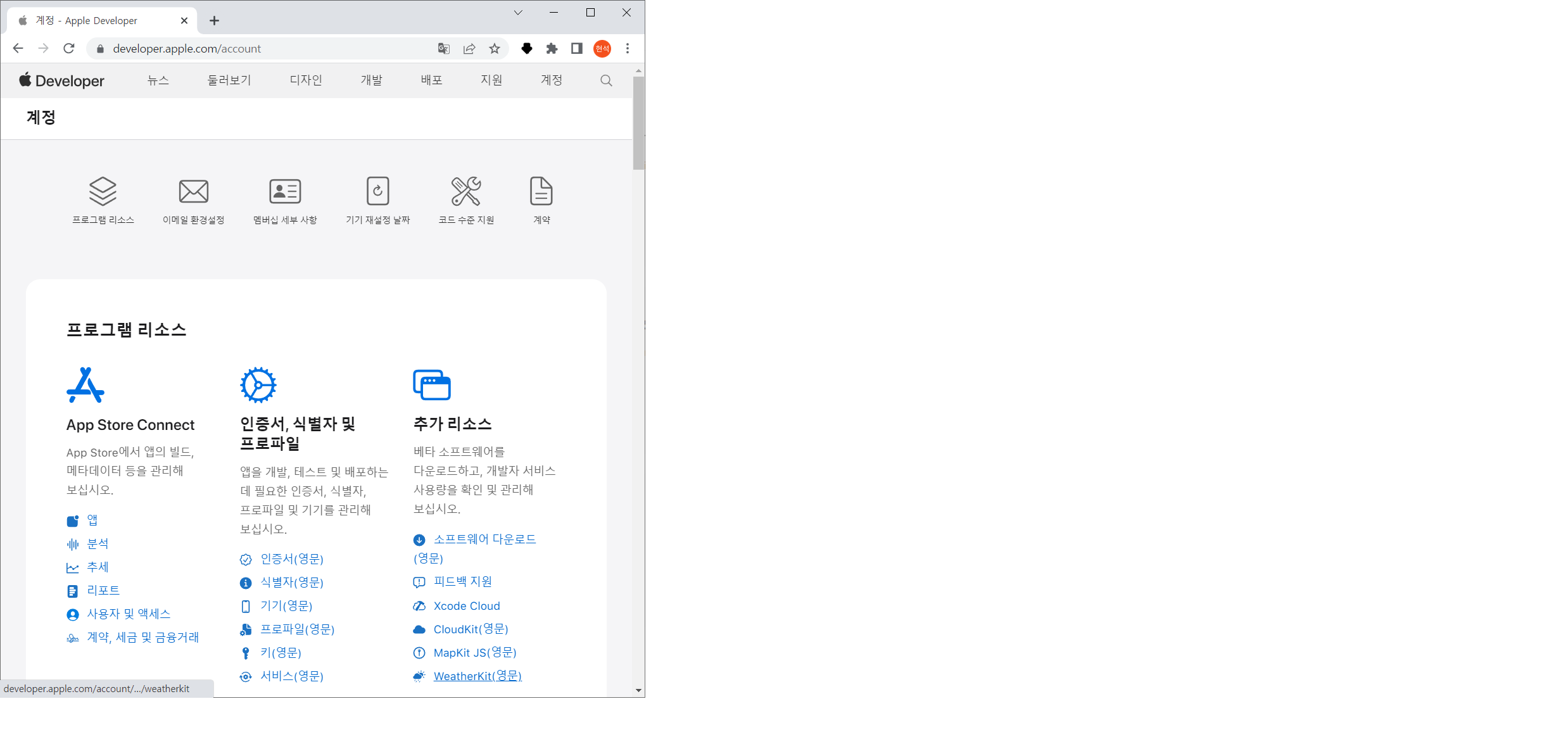 이를 해결하기 위해 아래처럼 애플 사이트에서 사전 설정 작업을 진행해야 한다.