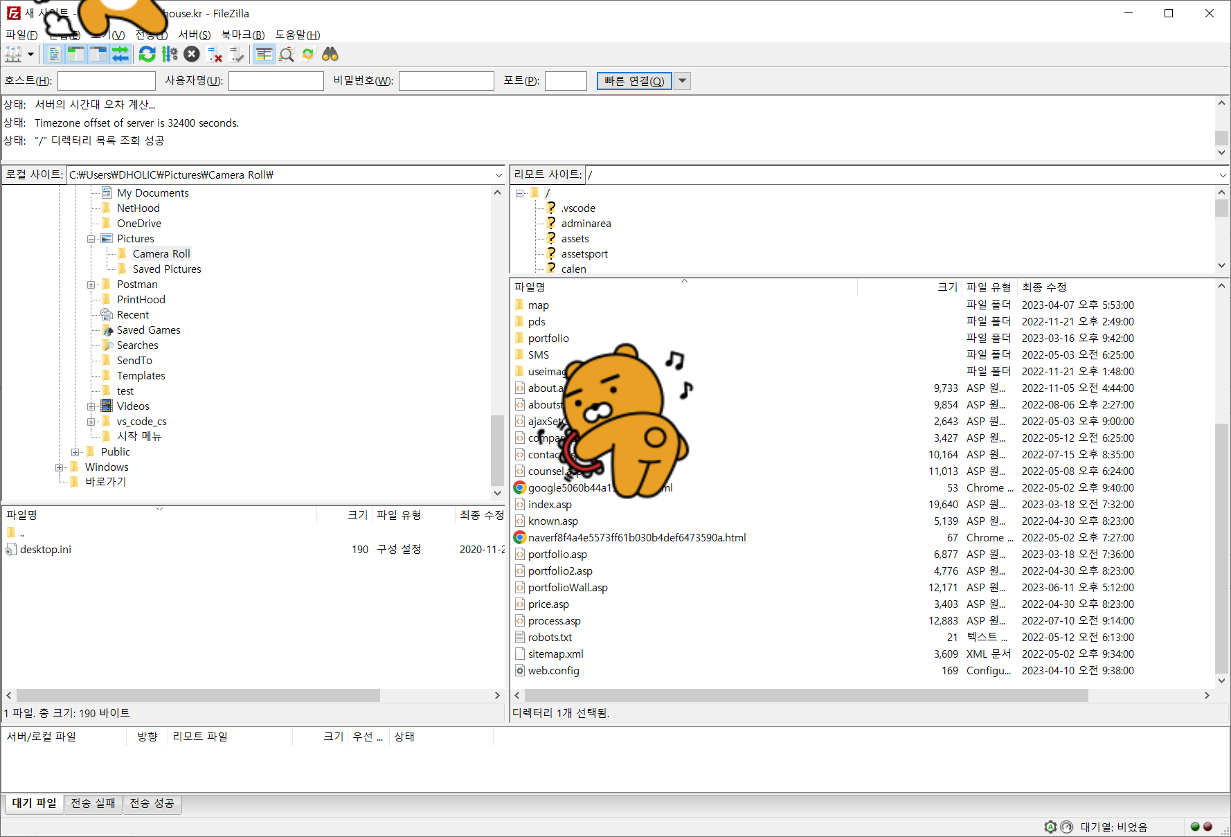 다운로드가 되길 원하는 위치를 선택하고 확인을 누르면 원하는대로 asp확장자의 파일만 다운받을 수 있다.