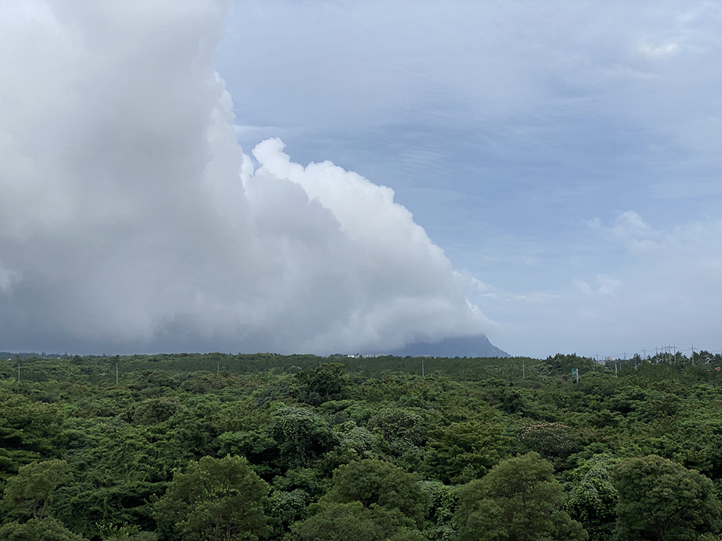 아래 사진은 객실에서 바라본 숲뷰인데 저 멀리 삼방산도 구름에 가려진채로 예술적으로 보이길래 담아봤다.