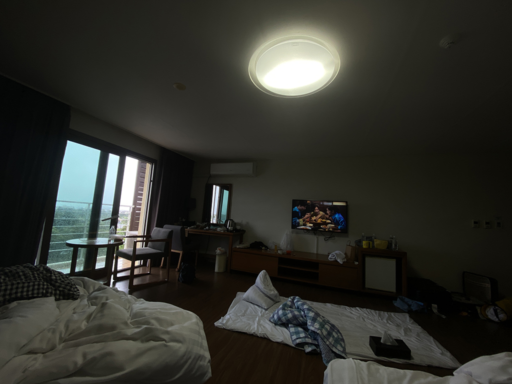 1박당 8만원대였고 기준 숙박인원은 3인이었으나 추가 침구류를 1회 납부하는 조건으로 성인3인에 초등학생1명 이렇게 총 4명이서 묵을 수 있었다.
