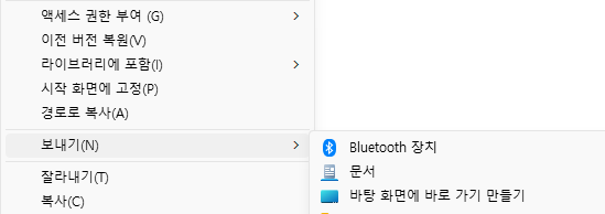 윈도우 10까지만 해도 직관적으로 새폴더를 만들 수 있었고 마우스 우측으로 바탕화면으로 바로가기도 수월히 만들 수 있었다.