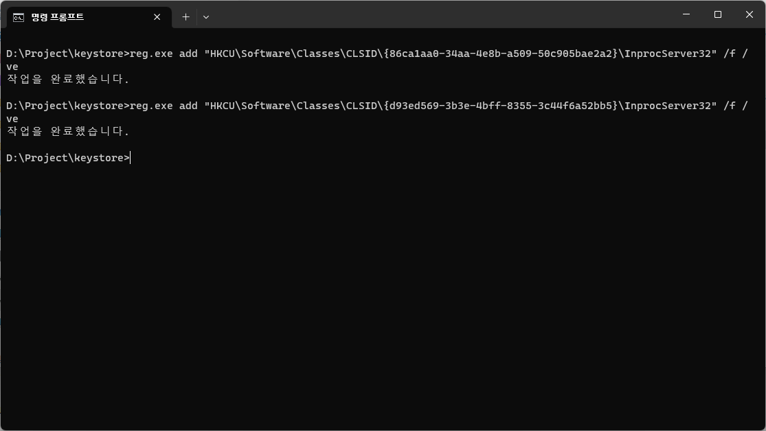 reg.exe add "HKCU\Software\Classes\CLSID\{d93ed569-3b3e-4bff-8355-3c44f6a52bb5}\InprocServer32" /f /ve