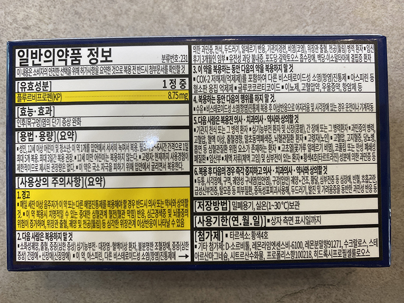 괜히 참지 말고 품절된 스트랩실 (혹은 해외 현지에서도 납품이 잘 안된다나 어쩐다나.. 잘 모르겠다.) 대신 인후통, 인후염 등으로 목아플땐 모가프텐 같은 의약품의 힘을 빌리길 바란다.