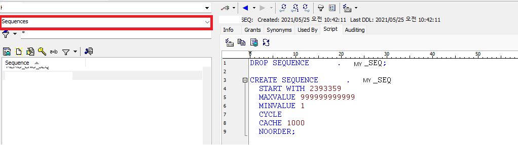 대충 이런식으로 MY_SEQ를 만들었다 치자.