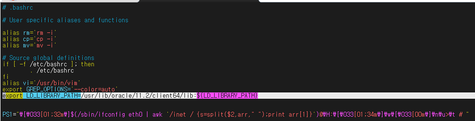3. vi ~/.bashrc를 입력해서 환경변수 설정