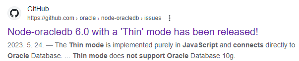 자랑스럽게 node oracledb 6.0에선 Thin mode를 지원한다고 발표한 상태다.
