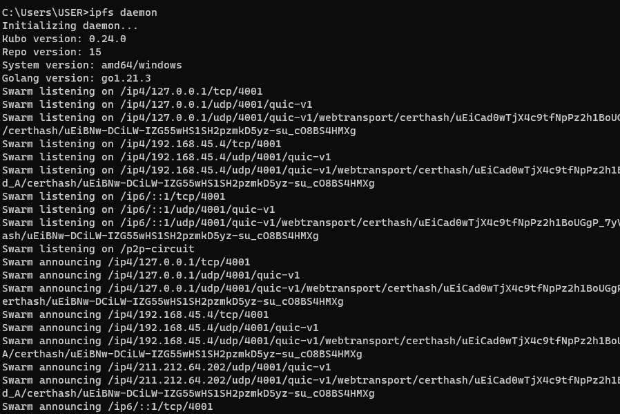 윈도우용이든 CMD에서 ipfs daemon 명령어를 이용해서든