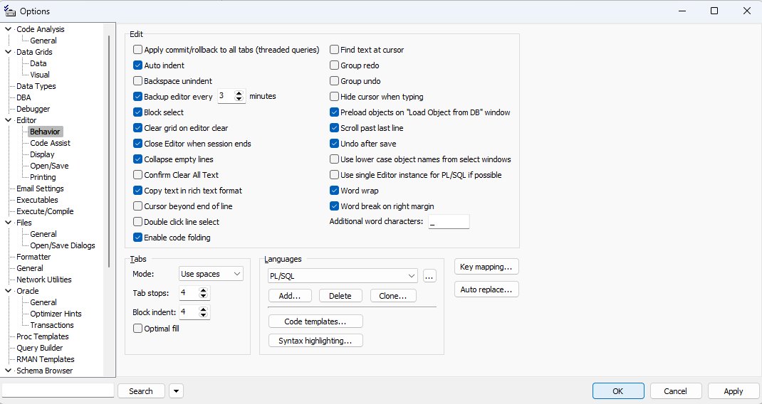 마찬가지로 Options까지 온 다음 Editor의 Behavior의 Word wrap를 체크해주면