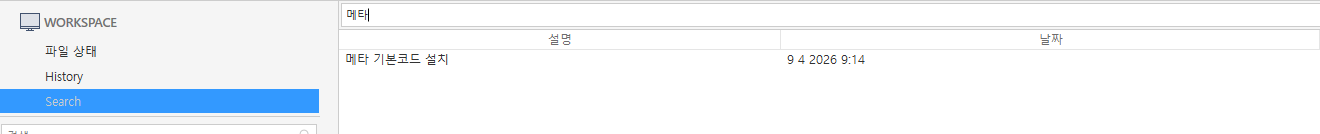 소스트리 접속 후 좌측 메뉴에서 Search선택