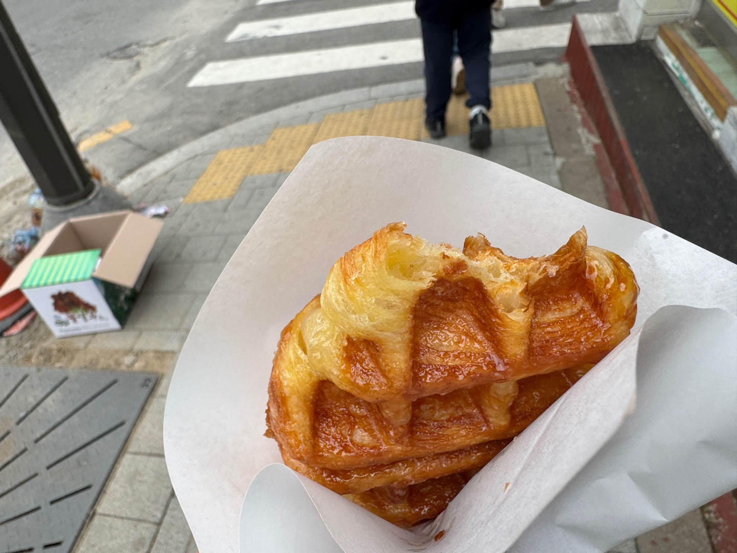 아 왜 내가 괜히 미안해지는거지? -_- 커피라도 한 잔 사려 했더니 오늘은 이벤트 때문에 커피 자체를 판매하지도 않으신다하더란 미안함을 뒤로 한채 크로플을 한입 물었는데 헐... 이거 뭐지???? 일본에서 줄서서 먹는 그런 맛이 느껴진다. 과하지 않은 바삭함과 코팅된 시럽의 조합 놀라움의 연속이다.