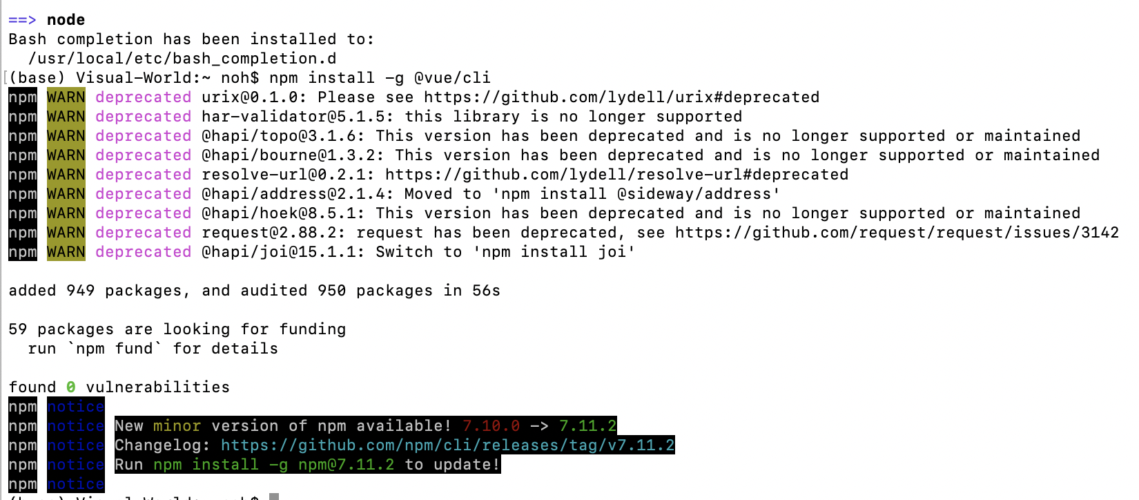 npm이 설치되었으니 이제 본격적인 vue cli 설치를 진행한다.