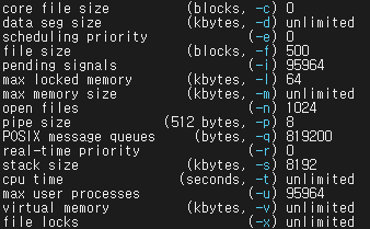 ulimit -a 명령어를 실행해보면 아래와 같이 나타남
