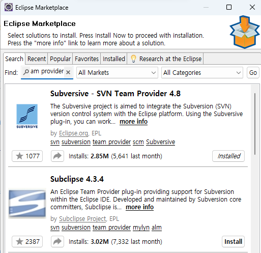 | 이클립스 SVN 설치 뻘짓하지 말기 : SVN Connector discovery completed without finding any connectors (1) | 2023.09.18 |