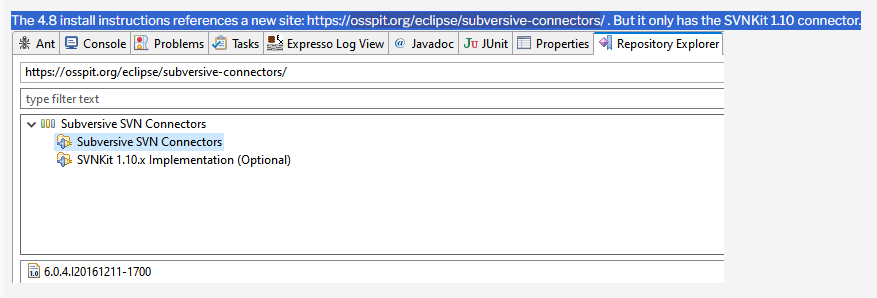 그래서 SVN Connector를 설치하기 위해 Window > Preferences > Version control (Team) > SVN > SVN Connector > Get Connectors로 가면 Connector를 찾을 수 없다며 오류메지가 떠버린다.