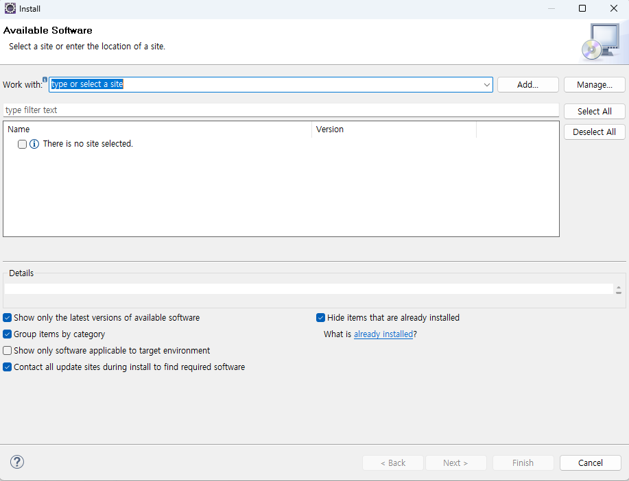 eclipse의 상단 메뉴에서 Help > Eclipse Marketplace를 선택해