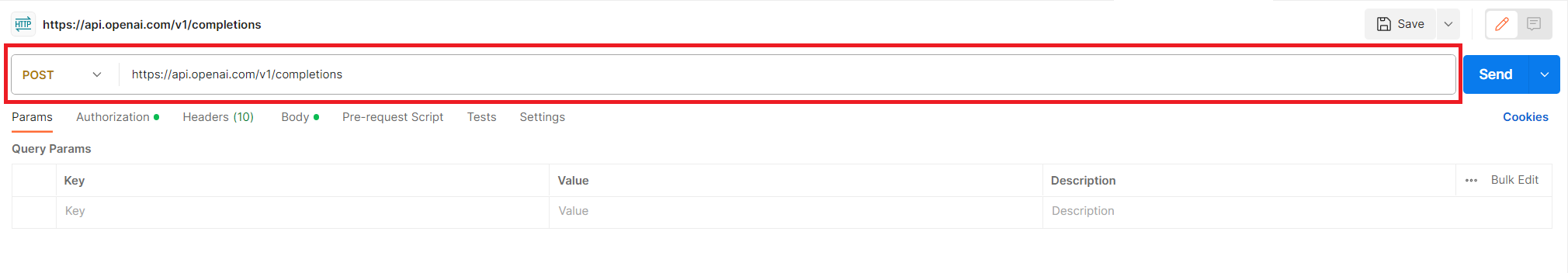 설치까지 다 했다면 실행 후 호출할 주소창에 https://api.openai.com/v1/completions를입력하고 호출 방법은 POST를 선택한다.