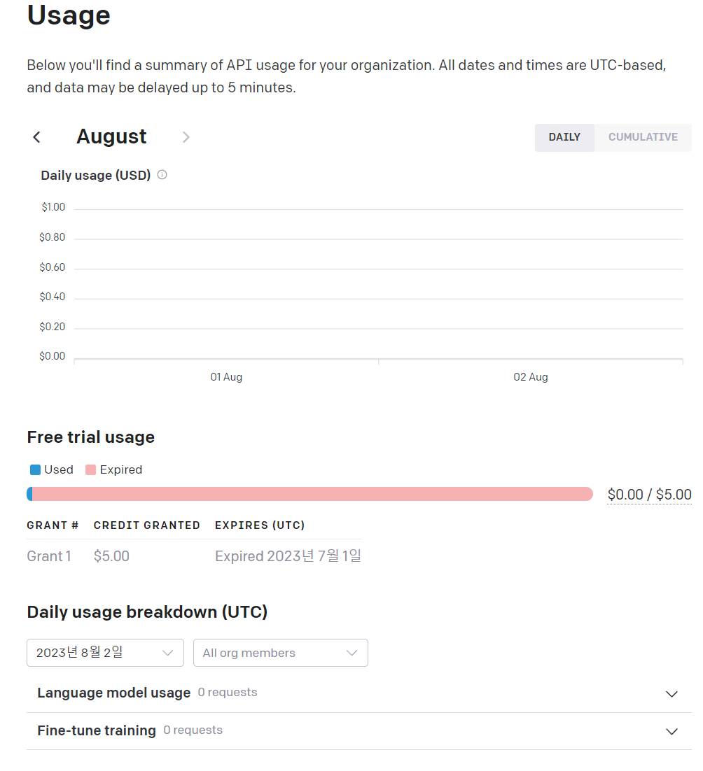chat gpt 사이트에는 분명 이렇게 5딸라까지 호출 여유가 있는데 쿼터를 오버했다니....
