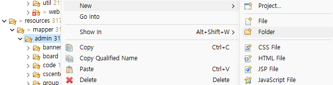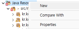 Project Explorer의 Java Resources에서 마우스 우측 버튼을 눌러 New를 선택하자.