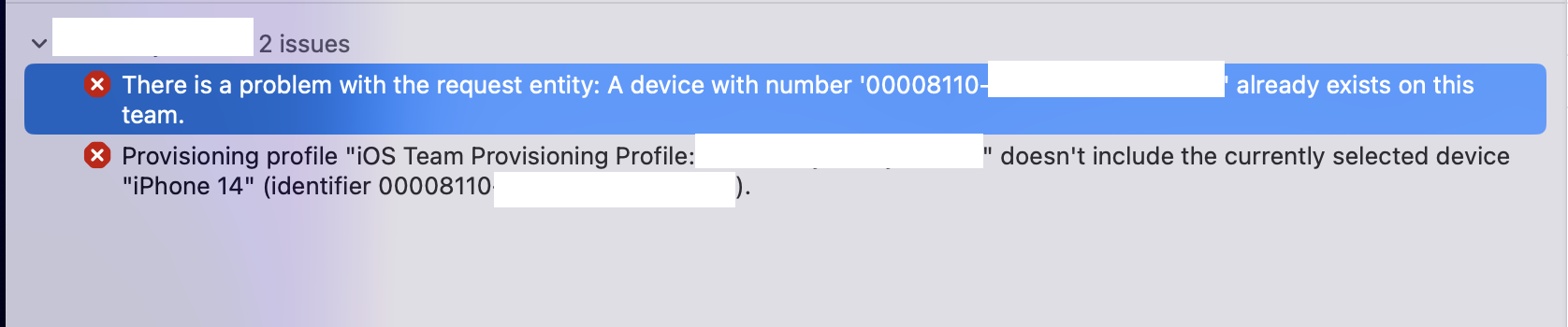 There is a problem with the request entity: A device with number '00008110-000000000' already exists on this team