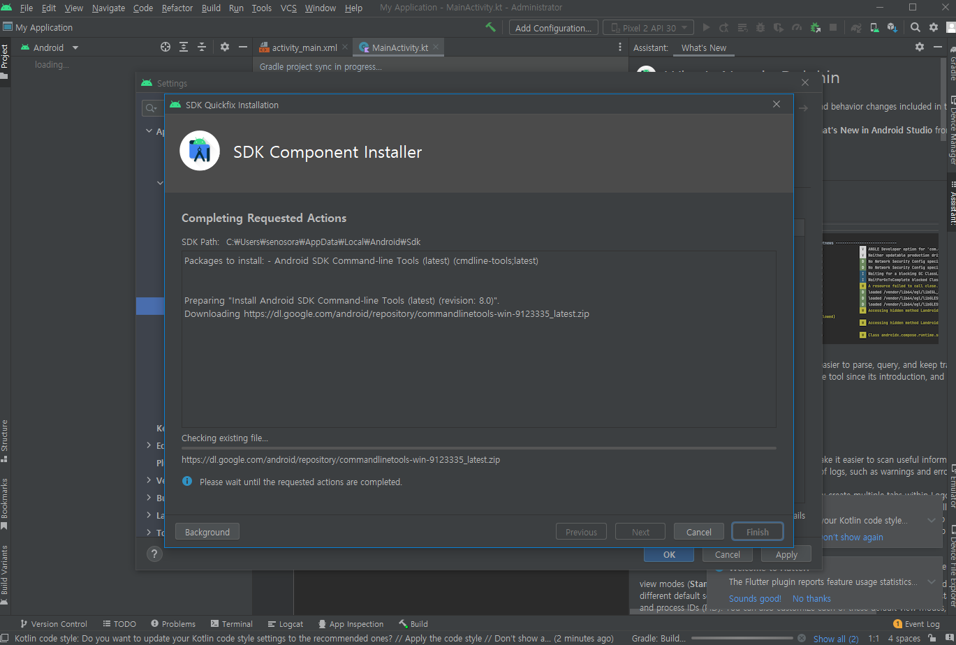 검색해보니 설정에 가서 SDK Tool을 깔아주면 된다는데