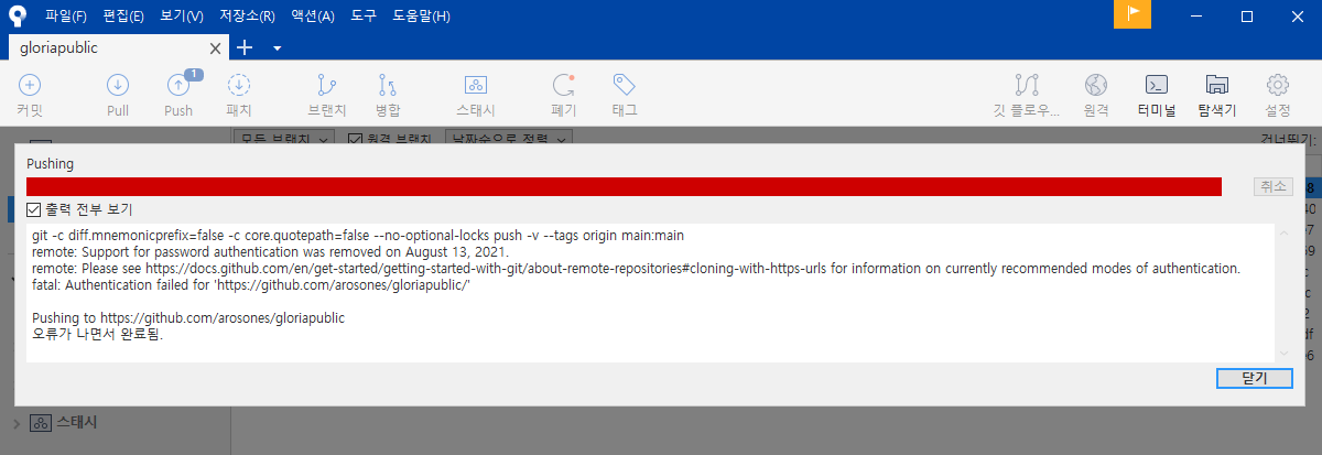 다 되었으면 이제 Push를 해야 하는데 이상하다.