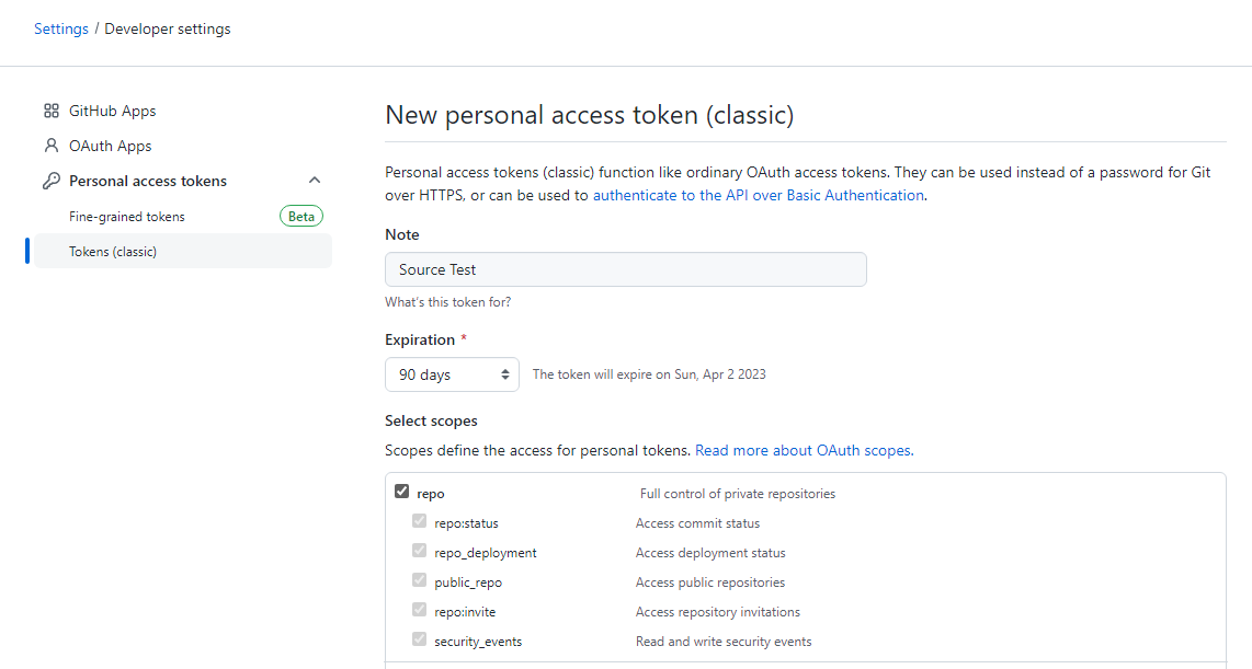 그리고 Source Tree의 URL에 붙여넣으고 끝내면 좋으련만 21년 이후로 계정 설정이 바뀌어서 토큰을 생성하여 주소에 포함시켜야만 한다.